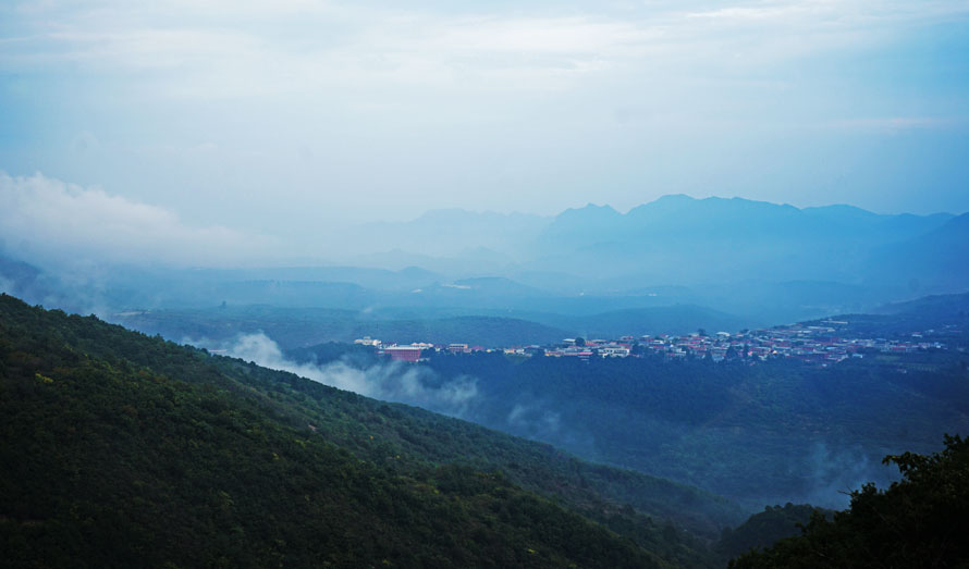 依栏而望,俯瞰燕山蓟水,长城关碟,高山峡谷以及谷里的村庄,尽收眼底,倘若有机缘,在这里还能看到翻腾的云海,壮观而迷离。天气晴朗的时日,四野苍茫,片片流云在蓝天游走,山川颜色铺陈。