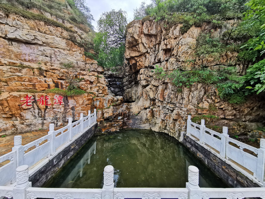 这些流传于民间的说法自然无从考证,不过当你置身于此,还是为老龙潭的位置和地势,以及地形风貌为止惊叹。古石突兀,壁立直线,两侧山崖宛如石门,一侧在顶部收窄,形成洞口,从下面看去,洞天一线,大自然鬼斧神工造就了这不可多见的奇地理奇观。