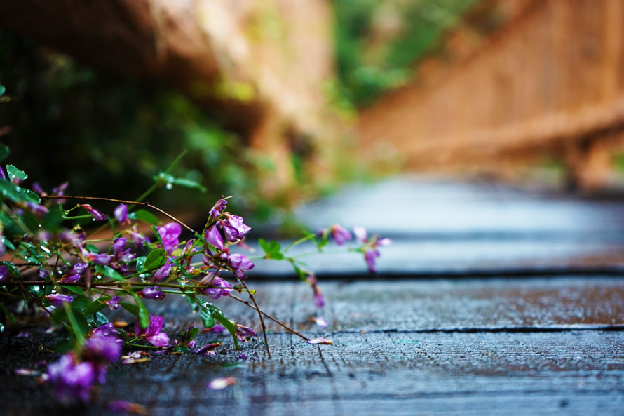 沿峡谷原始的石质小径下行,各种野花在脚边盛放,点缀了一方静寂的山野,浩荡的山风拂来,清凉而宜人。