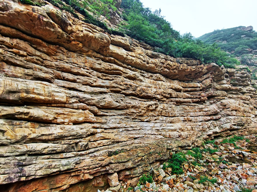 据说这条蓟州大峡谷里的地质岩石距今已有18亿万年之久,属地壳变迁而成,有科考人员称这里为“大地史书,举世瑰宝”,而今,这里的飞云流霞撼人心魄,百米瀑崖雄浑壮观,甚至,一块石头都蕴藏着大自然无限的奥秘。