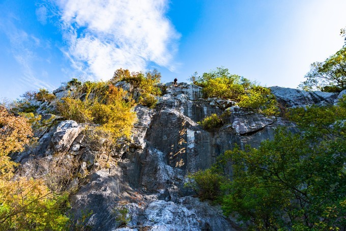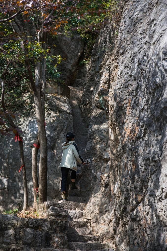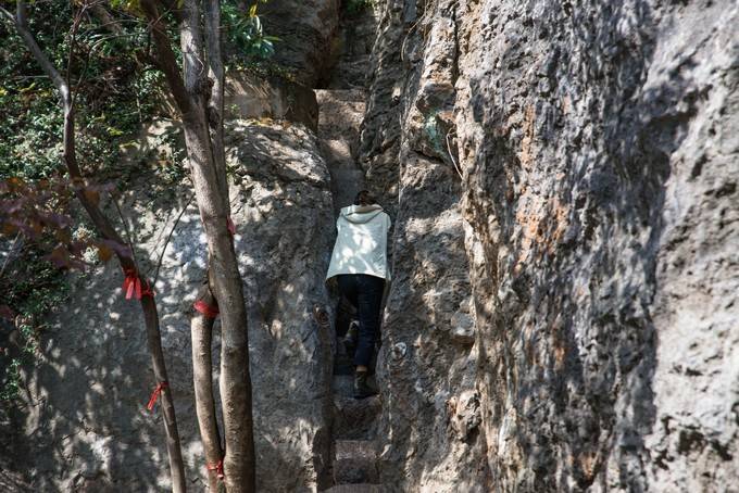 一线天十分的陡峭,但却是一条登上山顶的捷径,石壁上有辅助的吊环,即使如此,爬上去也不是一件容易的事。