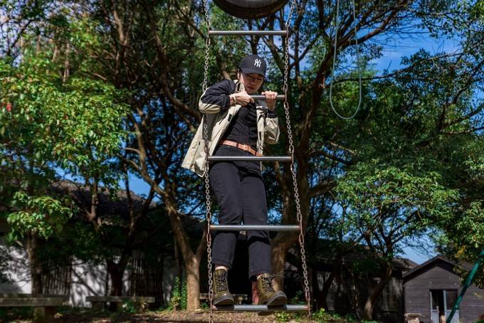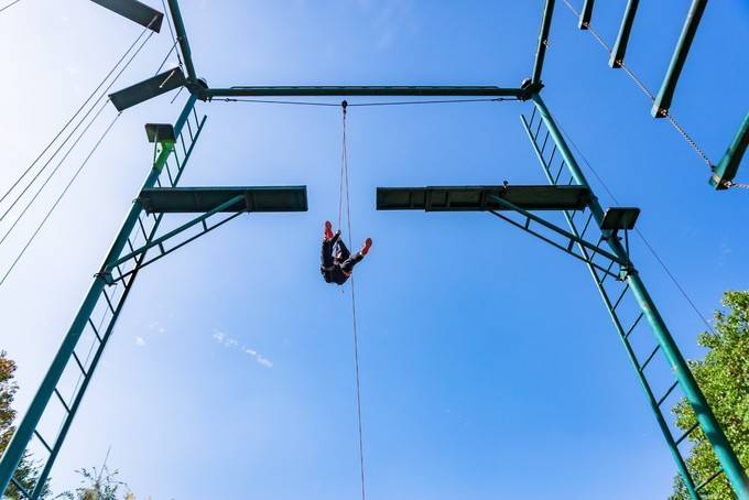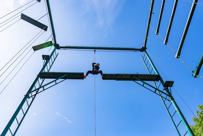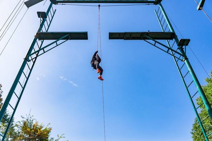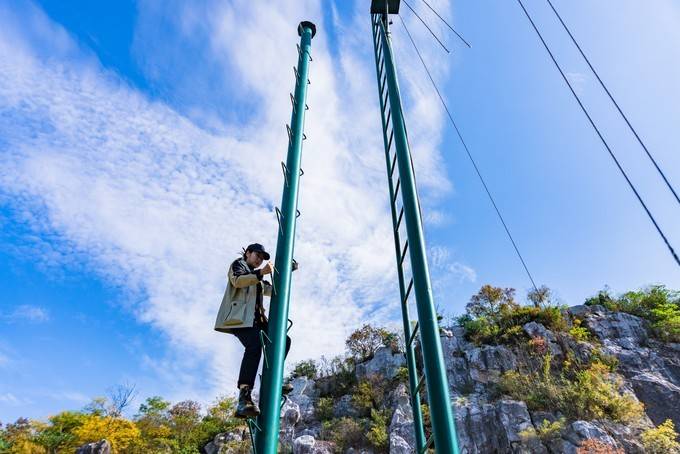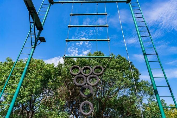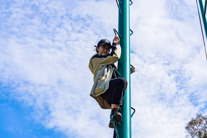 旁边的攀爬项目相对较为简单,女生也可以体验,前提是穿好装备,注意安全。