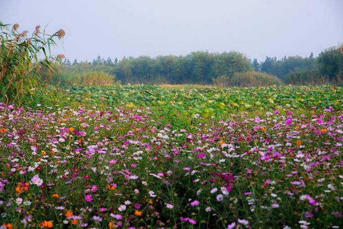 三山岛是一个浪漫且诗意的地方,山是浪漫的,湖是浪漫的,植物是浪漫的,花儿也是浪漫的。成片的鲜花及腰,黄的、白的、粉的、紫的,目之所及都是浪漫。
