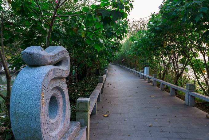 吴王大道是一条穿梭在湖岸观景线,道路两旁开满了美丽的芙蓉花,石栏上雕刻了精致的石像。湖中有十二生肖石,石临 太湖 ,玲珑嵌空,仔细看看像是十二生肖动物的形状。