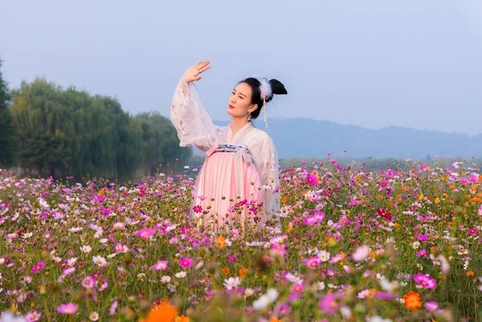 一身粉黛入花圃,清风自来笑颜开。穿着古装置身花海,扶一扶衣袖,望一望远方,一颦一笑,都是最美的画面。都说女孩子像花一样美丽,站在花海里比一比,究竟是人美还是花艳?
