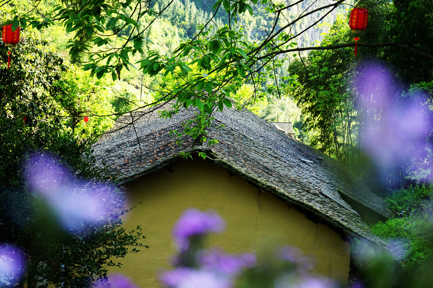 此刻,清风无声深深将峡谷淹没,我拎着相机,路过野花的盛放,也路过斑驳的屋檐,那些遥远的光阴宛如滔滔的三峡之水浩荡于天地之间,雕刻了古时的凶险,刻画了今世的美颜,我感慨于巴蜀先人生命的顽强与坚韧,也欣赏这里后人的自在与乐观。