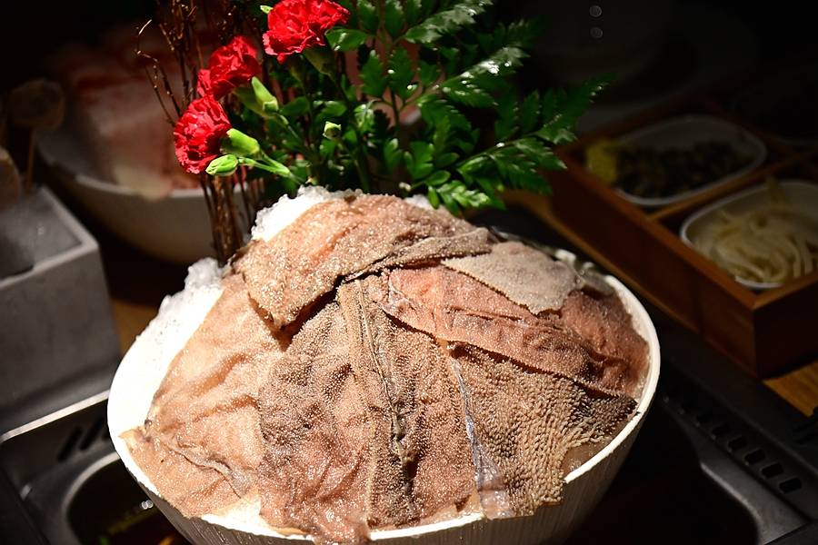 鲜毛肚,色泽清亮,一看就很新鲜,口感爽脆,赞不绝口。