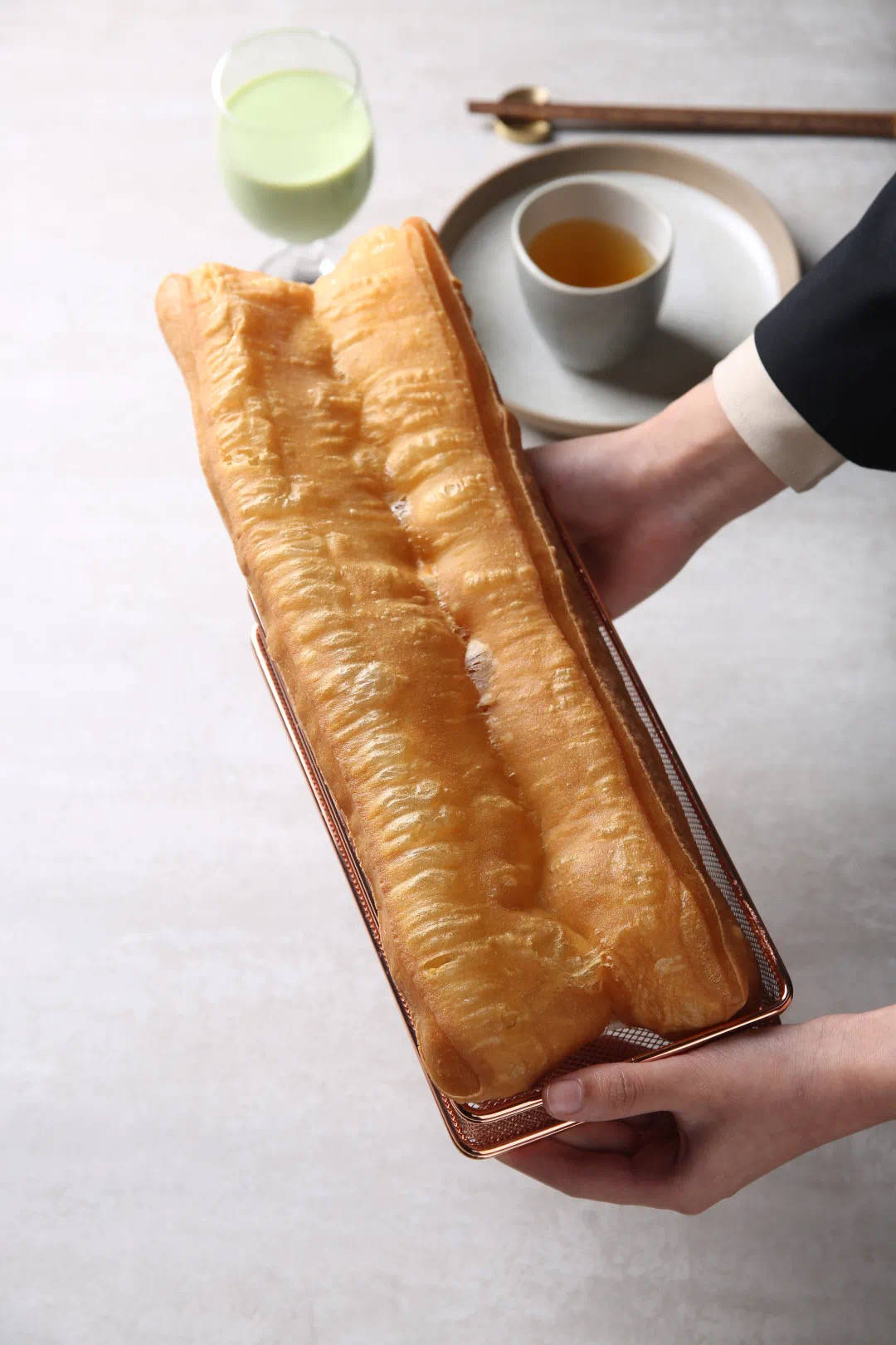 传位堂独家秘制非标尺寸油条,直径大于手臂,兼具酥脆、蓬松、香嫩与嚼劲,手撕细品、大口豪啃、蘸辣汤或放凉再吃,非标准的油条怎么吃都有非常规的独特口感。