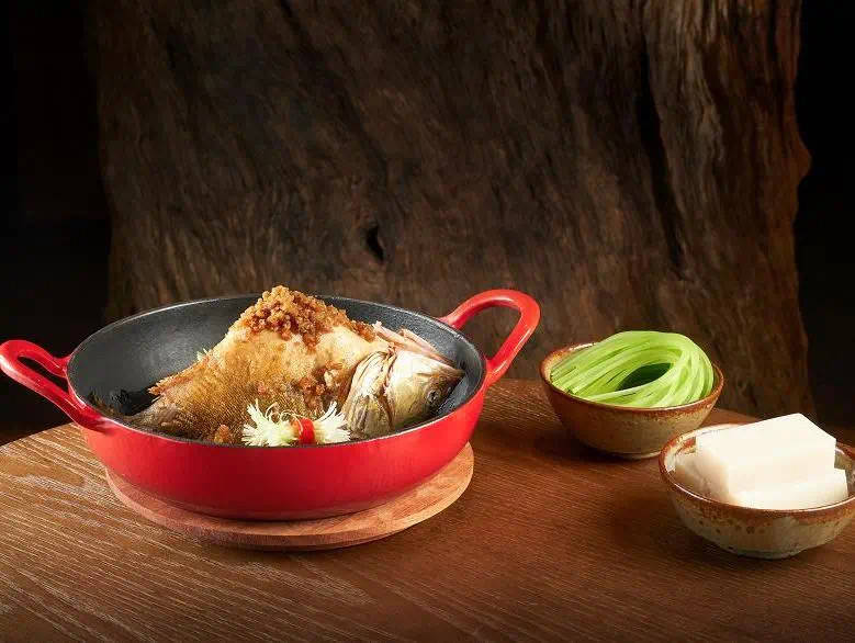 这道菜的点睛一手出自始创于清顺治年间的山西花牌老陈醋,精湛的酿造技艺和色香味俱佳的品质使其驰名南北、蜚声海外。以花牌老陈醋为香汤基底,选用澳洲M7雪花牛肉和三层肉剁碎煨熟平铺桂花鱼上层,再添两勺花牌陈醋,盖锅熬煮3分钟后,陈醋味道逼进桂花鱼之中方才功成。晋城老醋一袭醇香,秘制雪花牛肉秒增鲜润,汤浓而桂鱼甘,是为一道意想不到、层层递味而具仪式感的佳肴。
