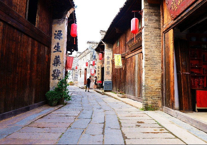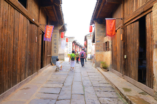 行走在古村,穿梭在千米长的石板铺成的巷子里,如同穿越到了旧时代,一切仿佛变得慢了起来。