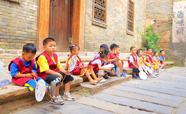 以我的认知,文昌阁应该是新建的作旧建筑,是古村的一个例外,正巧有一帮小学生在台阶上不认真地写作业,很应景。