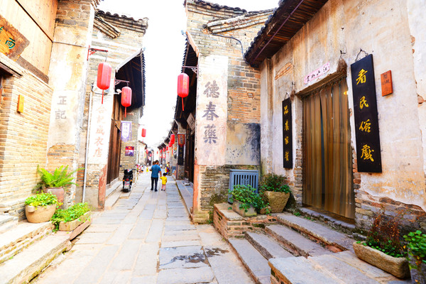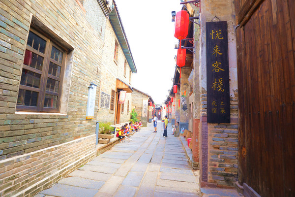 那条主要的商业古街不叫渼陂街,而叫陂头街,呈S型,走在悠长的古街,众多古老店铺林立街旁,“悦来客栈”、“永泰药房”等招牌字迹依稀可见,地上的车辙印也印证了当年这个有着“小南京”之称的古村的繁华。