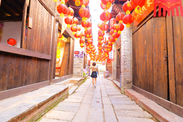 渼陂古村挂着许多灯笼,造型各异,仿佛在举办一场灯笼艺术展。