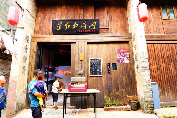 行走在古街上,我们看到了一个电影中熟悉的地方,那就是《闪闪红星》里潘冬子翻米牌的店铺。不过,无论是“今日售米”还是“今日无米”,全凭游客的兴致,翻一翻,拍个照,哈哈。
