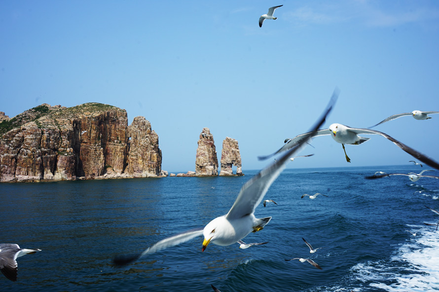 有史料记载,蓬莱仙境之源在长岛,岛内的山、洞、柱、石、滩等海洋风光独特旖旎,这里的森林覆盖率达到53.2%,优越的自然条件和独特的理位置,成为候鸟迁徙的必经之地,据说每年途经此地的候鸟数量达百万只之多,种类达200名种,长岛因此被冠以“候鸟驿站”的美誉。
