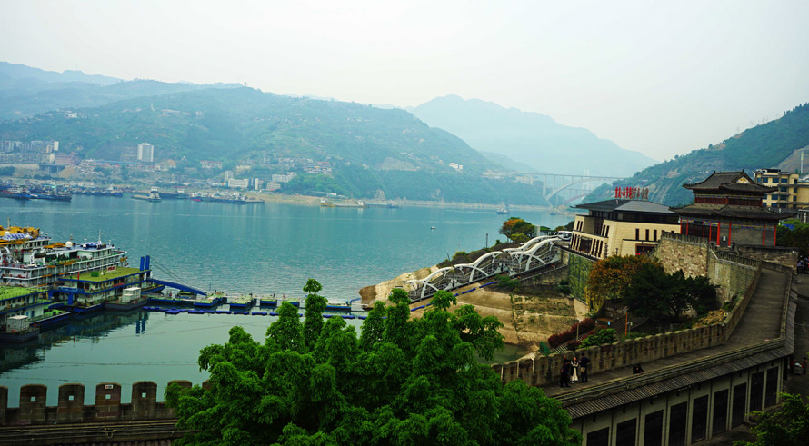 不过,杜甫老爷子看到的“无边落木萧萧下,不尽长江滚滚来”的场景今天似乎已看不到了,最多在秋天的时候,欣赏到无边落木萧萧下,而滚滚的长江水,已随着历史的光阴流走,今日的长江水因为蓄水发电而静无波澜,像巨大的绿丝带蜿蜒于赤甲山和白盐山的缝隙之间,成为绝世风景。