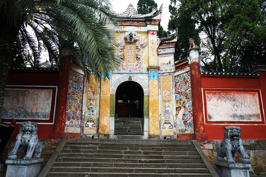 沿台阶上行,进入白帝城,这里有一座白帝庙,白帝庙的大门是白帝城的标志性建筑,雕龙描凤,典雅华丽,颇具特色,建于清代,沿袭了典型的明代建筑风格,据说已被收录《中华名匾》名录。