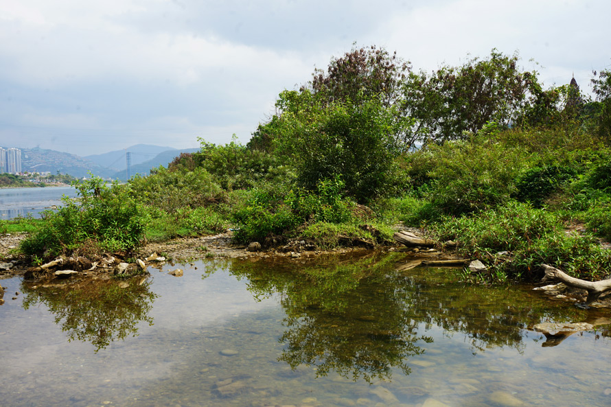 不知道走了多久,只觉得汗流浃背,真的被朋友说中了,不过这又有什么关系,江水那么清澈,近在咫尺,洗把脸就可以了。就在我准备找一处靠近水面又容易下脚的地方的时候,忽然有了一个念头掠过——不会有鳄鱼吧?这个想法着实吓了我一跳,迅速在手机上查询了下,基本可以确认靠近市区的澜沧江没有这类生猛的生物,自己吓自己的氛围似乎营造的很到位,不过四野无人又如此荒凉的境地,让我忽然真的害怕起来,“湄公河行动”之类的影视剧情不自觉地在我眼前浮现。最初的看到大江的欣喜似乎荡然无存,我只想尽快走出这一片沼泽连接一片荆棘丛的地方,但是一眼望不到楼宇。看不到楼宇就说明还没到市区,我忽然就着急了起来,也顾不上欣赏那些好看的花朵和奇异的果实。