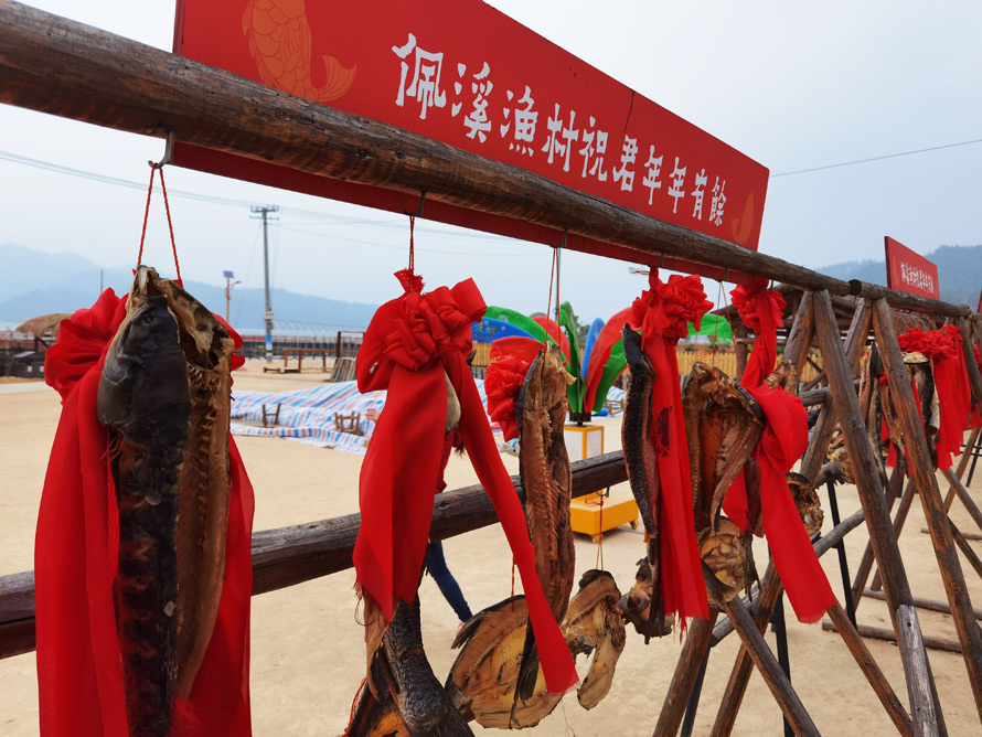 佩溪村位于江西吉安万安县沙坪镇,四周青山环绕,森林遍野,赣江水碧波荡漾,风景优美。在这里,人们远离城市的喧嚣,在自然美景之中徜徉,每到冬季捕鱼季节,佩溪村的赣江湖面人声鼎沸,渔民们整齐地喊着号子拽着鱼网,鱼儿从水面高高跃起,拍着江水引起阵阵浪花。沿着江畔的游步道上,一排排腊鱼沐浴着阳光,散发着鱼香。