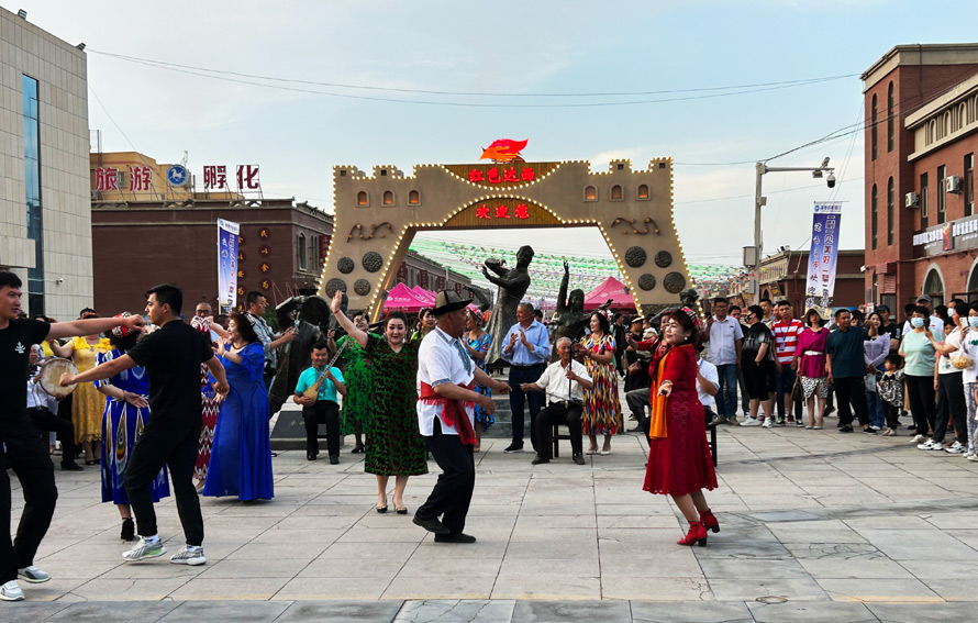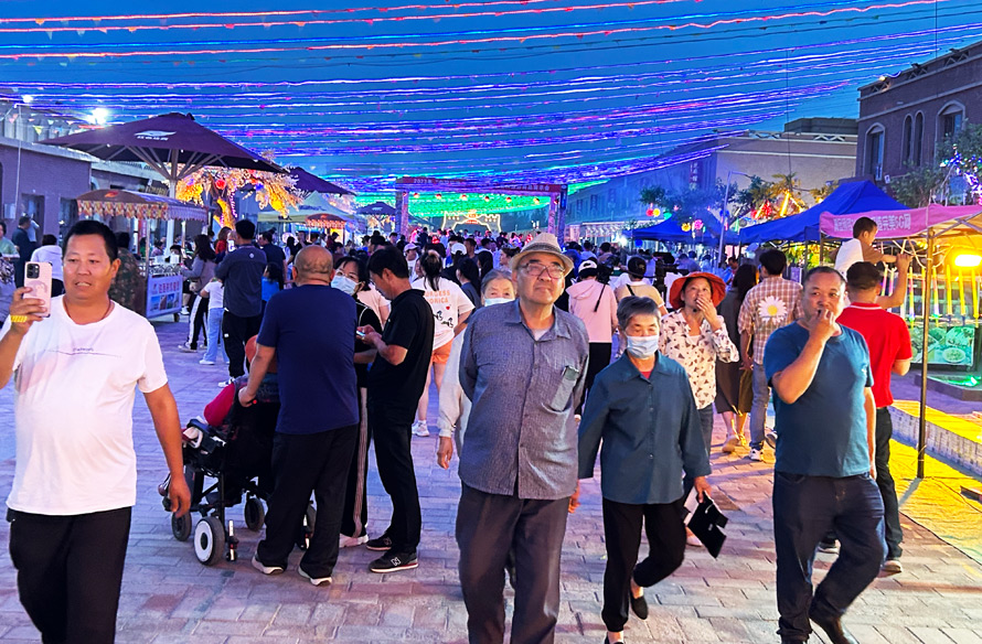 和新疆其他地方一样,每年旅游旺季,这里来自全国各地的游客都会在此停留几日,6月、7月的达西村,游人有点多,村里的风情街上每日都是热闹到半夜才渐趋安静。这里集美食品尝、非遗展销、歌舞表演、直播带货等于一体,夜经济十分火爆,不仅成为县城人民的休闲地,也是游客热衷的打卡地。