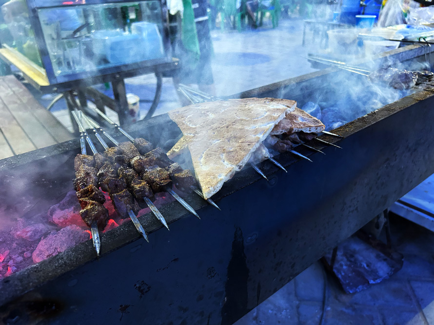 烤肉是新疆的特色美食之一,在新疆各地都有烤肉店,而达西村也不例外。烤肉是将羊肉切成薄片,用铁签穿起来,然后放入炭火上的烤肉架上烤制而成。烤肉口感酥脆,肉质鲜嫩,香味扑鼻,是一道非常受欢迎的美食。