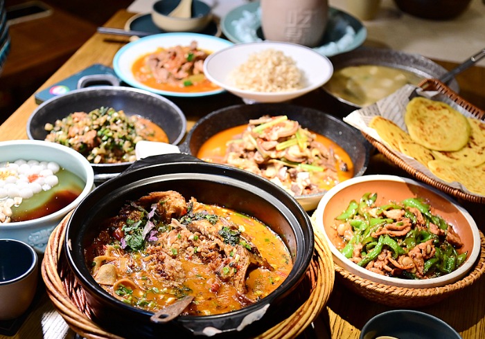 灶膛罐罐牛腩,选用来自湘西农场的特供山里散养黄牛牛腩,大火翻炒后加入秘制佐料和烧开的高汤,先大火炖煮再中火焖煮,然后放入定制的一次性陶罐子中密封低温煨煮,然后敲破倒出里面的牛腩和汤汁,顿时香气四溢,牛腩口感软烂,吃的到湘西土家族的原汁原味,令人惊艳!