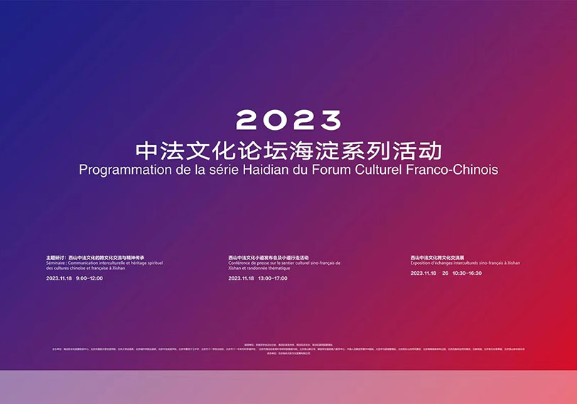 中法文化论坛海淀系列活动是中法两国高级别文化交流的成果,由欧美同学会法比分会、北京外国语大学和北京市海淀区委宣传部联合发起,旨在进一步加强海淀中法交流文化研究和文化传播工作,有效促进西山中法文化交流史迹群保护利用。2023年的主题是:西山中法文化的跨文化交流与精神传承。