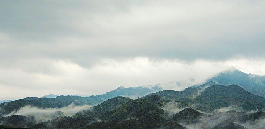 一时,初歇的牛毛小雨又开始洒落起来,雾气更浓厚些了,周遭迷蒙一片,除了哗哗的水声,整个溪谷都沉浸在静寂中,偶然从竹林传来的三两声清脆鸟鸣,使这竹雾清溪益发显得幽静出尘了。绿竹摇曳间,我正潜心拍摄雾景,一位红衣少年忽然闯入镜头。他静立在远处对岸的水边,略站了一站,转身又消失在竹林田间,这一抹红色的闪现,为这梦境般的绿雾画面定格了一帧艳丽。