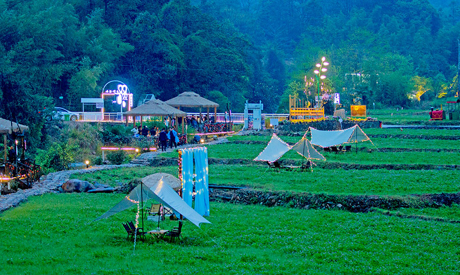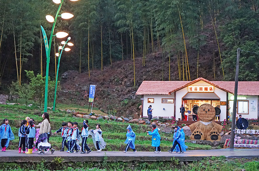 这里就是位于福建龙岩古田镇的袁梦村,村子与国家级自然保护区梅花山无缝连接,生态环境不亚于名山大川,禾下茶室、一水护田、稻田餐桌,周末时光,叫上三五好友,在禾下茶室饮茶聊天,舒压解乏,畅享悠闲时光。稻田餐桌寓教于乐,孩子们既可以在周边的菜地采摘,也可以在“稻博园”体验耕作,近距离感受农耕文明魅力,沉浸式体验乡村生活。
