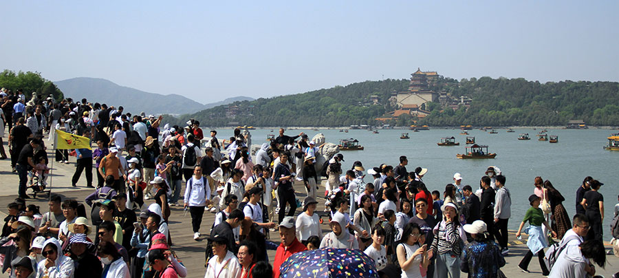 今天是“五一”假期第二天,颐和园、天坛、北京动物园等市属公园逐步进入游园高峰。除线上网络购票外,市公园管理中心前置公园假日游园服务保障,通过扩容综合窗口、加装引导护栏、延长排队通道、增设出口通道等,加强热点公园门区服务管控,保证游客市民入园顺畅有序。