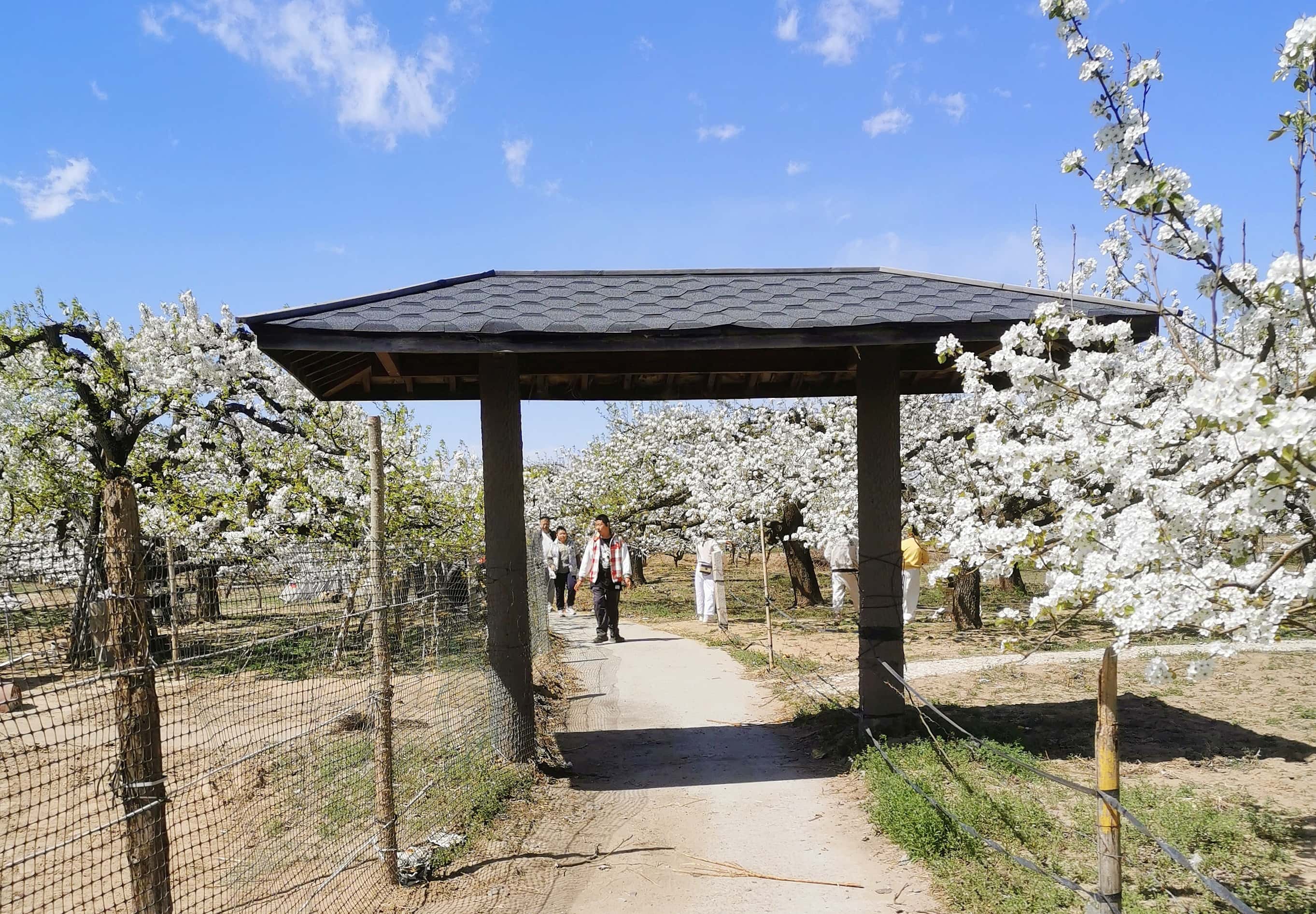 这里原本是世世代代栽种京白梨的果园,3000多亩的园区里,京白梨、子母梨、鸭广梨等果树错落分布,每到清明前后,便褪去萧瑟,缀满雪白繁花,成为京城人就近赏花打卡的首选之地。