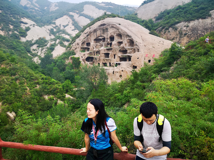 从第一个古崖居顺着右手边上去走到对面的山上,可以看到整个古崖居全貌,看完之后顺着下山的路继续观览另一面山上的洞穴,再往下还有小型的古崖居可以看看。