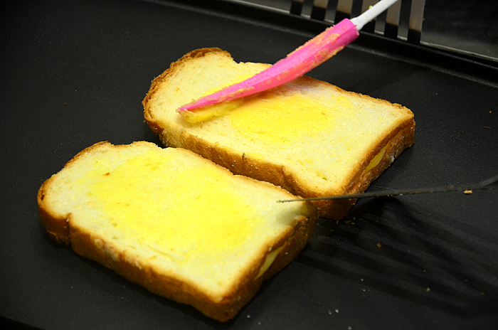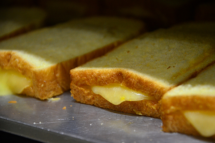 吐司中夹的芝士满到溢出,让人一看就很有食欲。