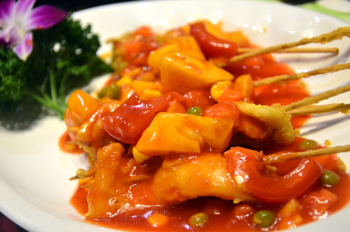 菠萝糖醋鱿鱼串,色泽鲜亮诱人,鱿鱼鲜美弹牙,菠萝香甜爽脆,淋上酸甜恰到好处的酱汁,好看又好吃。