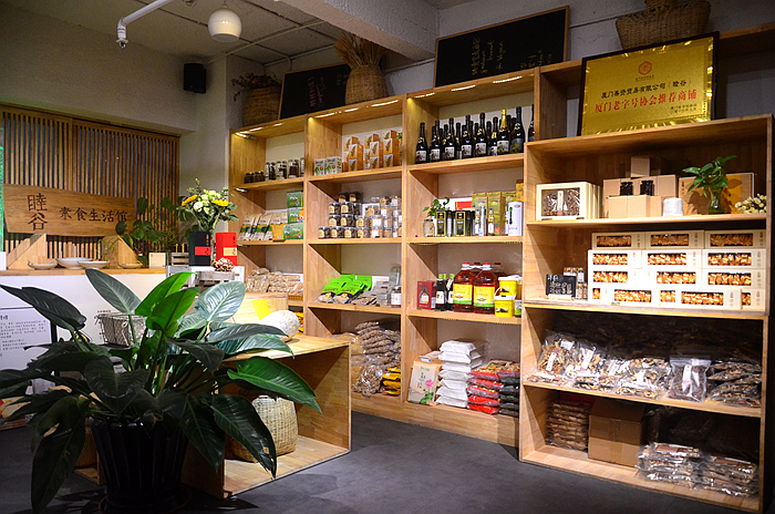 架子上陈列着各种天然健康的食材、茶叶,还有食疗养生的书籍,相当的专业。