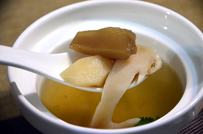 松茸马蹄养生汤,用野生松茸、牛肝菌、青莲花、奶浆菌等菌菇,加上新鲜马蹄慢炖而成,汤汁清而不淡,天然的清香和甜美,喝上一碗,营养丰富,滋润无比。