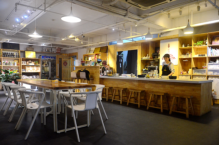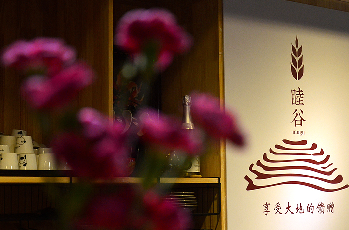 睦谷素食生活馆位于厦门湖滨北路宏业大厦15楼D单元,是一家写字楼里的素食生活馆,木色的门框,大红的对联,自然质朴的感觉扑面而来。