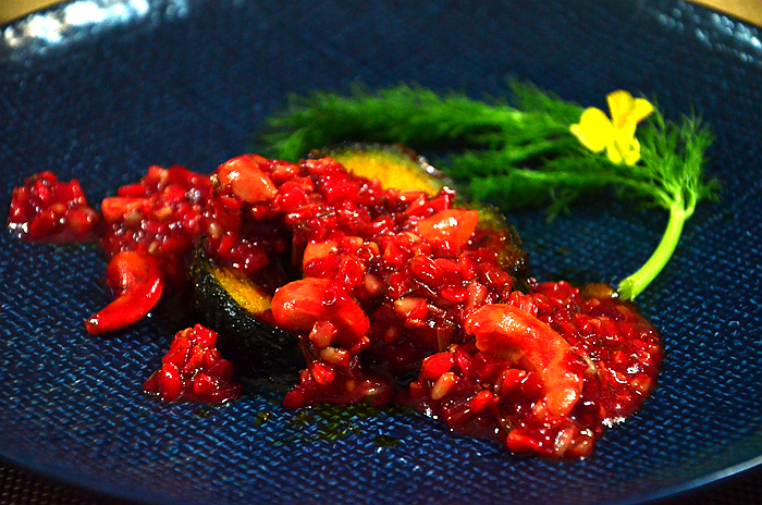 甜菜燕麦腰果焗贝贝南瓜,将甜菜、燕麦米、生腰果、茴香末、橄榄油熬制成酸甜可口的酱汁,再滴上新鲜柠檬汁,淋在烤好的贝贝南瓜上,天然的鲜艳色泽分外动人,酸甜的酱汁配上香甜的南瓜,让人欲罢不能,吃的干干净净还意犹未尽。