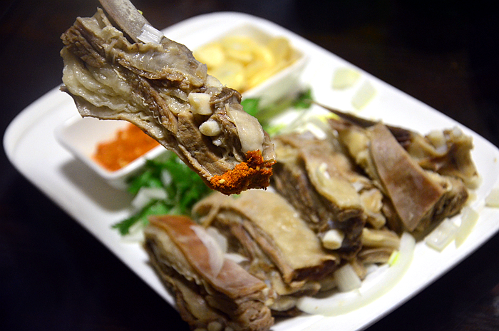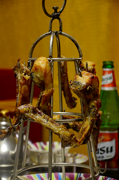 餐厅营业到凌晨2点,来吃夜宵也很合适,胡辣羊蹄,大大一根,烤的火候恰到好处,很有水准,这部分的皮肉很嫩,胶质丰富,好吃又养颜美容。