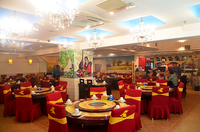 店里宽敞明亮,整洁大方,有大厅有包厢,布置的充满新疆风情。