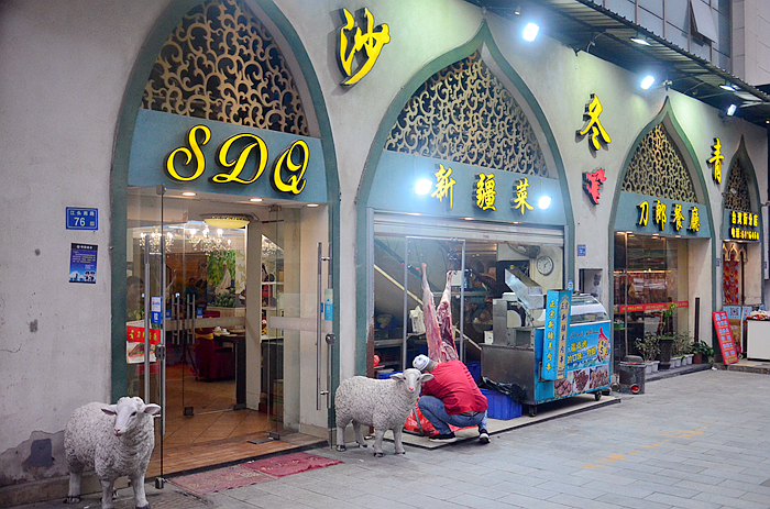 沙冬青·刀郎餐厅(台湾街店)位于厦门江头南路,大大的门面,新疆风情扑面而来。
