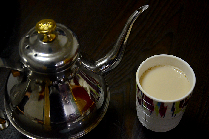 喝一杯新疆的哈斯克奶茶,香甜中带着咸味,别有一番滋味。