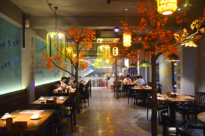 店内格局方正,宽敞明亮,整齐洁净,墙上是有趣的涂鸦和文字,果然开在文创区的烧烤店也是很文艺范的。