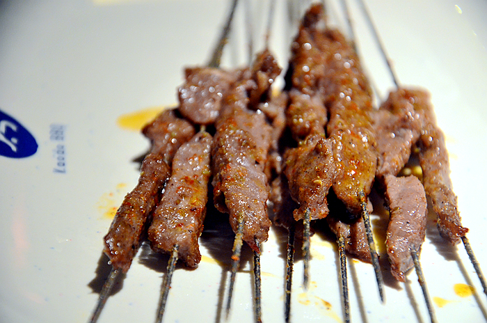 烤黑椒牛肉香嫩够味,烤猪颈小肉串香脆可口。