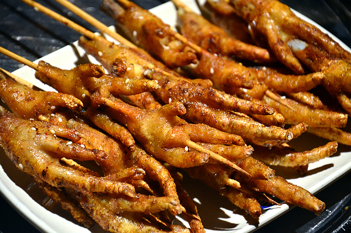 烤五花肉肥瘦得宜,烤鸡爪香酥美味。