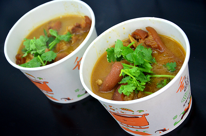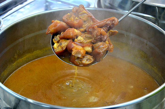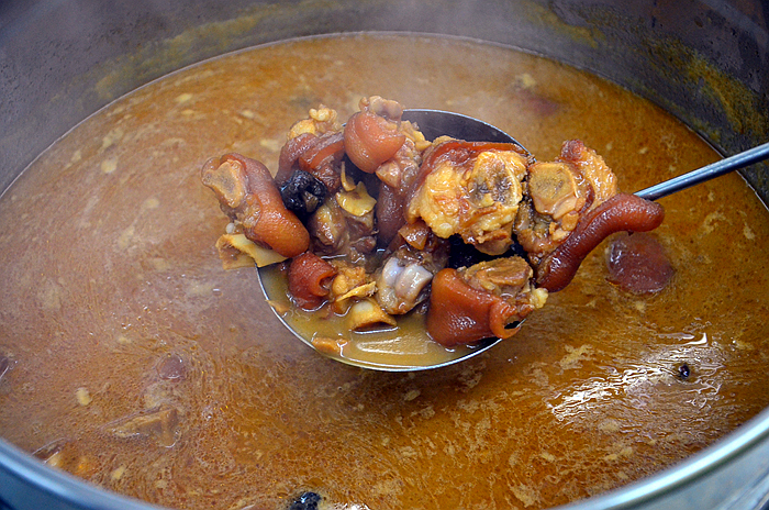 大锅中熬制着浓郁的沙茶猪蹄汤,香气四溢。