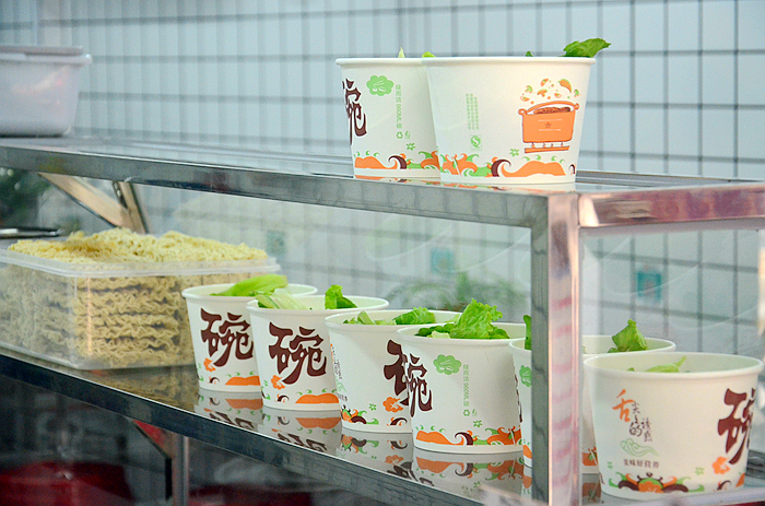 橱柜里整齐摆放着面碗,等待着盛放热腾腾的面,让食客捧在手中。