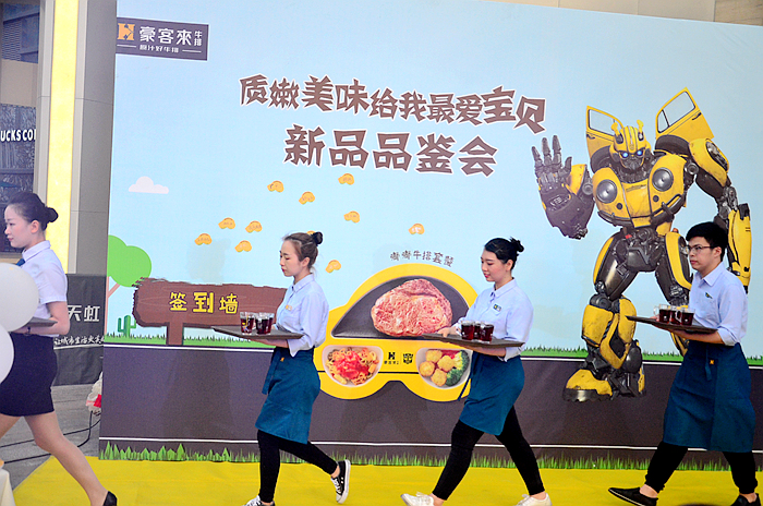 邀请路过的孩子们品尝,果然孩子们都很喜欢呢!不少家长看孩子爱吃,就直接带着孩子去商场二楼的豪客来牛排餐厅点一份嘟嘟牛排吃了,果然是百闻不如一尝。