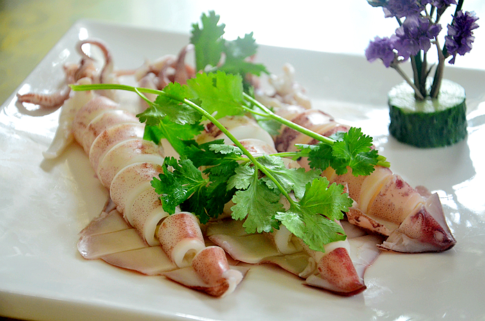 白灼东山鱿鱼,东山的鱿鱼大名鼎鼎,品质优秀,用白灼的做法能吃到食材的原汁原味,口感紧实弹牙,滋味鲜美清甜,果然不同凡响。