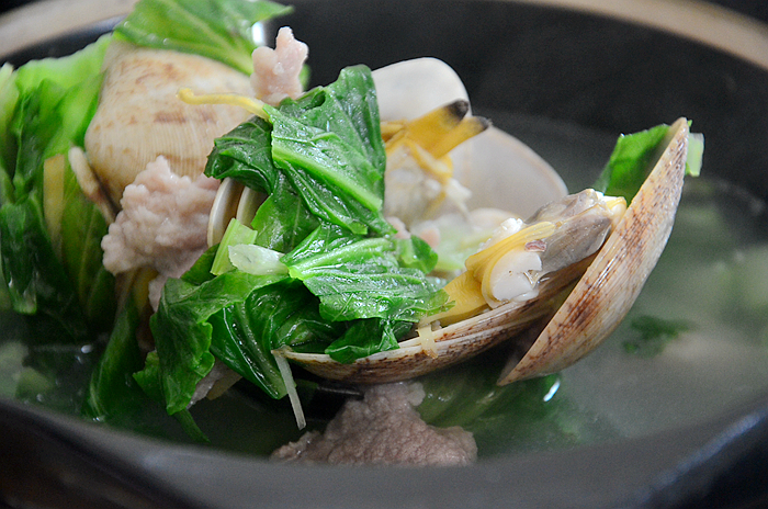 沙包芥菜肉羹汤,青翠碧绿的芥菜,温润如玉的贝肉,大块幼滑的肉羹,清澈通透的汤汁,一看就让人清新舒爽,汤喝起来清而不淡,鲜美清甜中带着芥菜的清冽,大家赞不绝口,一会就瓜分一空。